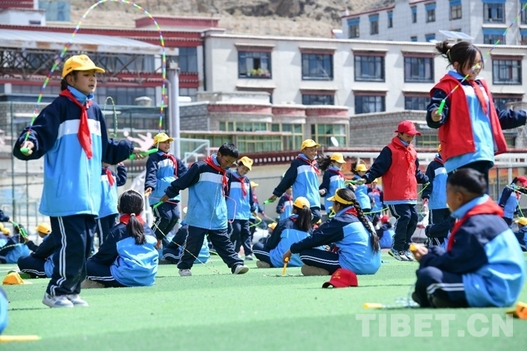 圖為(wei) 活動現場學生在學跳繩 攝影:次旦拉姆