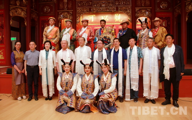 圖為(wei) 西藏自治區拉薩市城關(guan) 區娘熱民間藝術團的藝術家們(men) 與(yu) “戲舞雪域——多元文化視野中的藏戲藝術推廣研討會(hui) ”專(zhuan) 家合影 攝影:劉莉