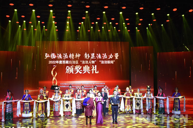 頒獎典禮現場通過播放獲獎人物短片、主持人采訪互動和法治文藝演出,展現了法治人物的先進事跡和法治西藏建設成效。(新利平台 記者/次旦拉姆 德吉卓瑪)