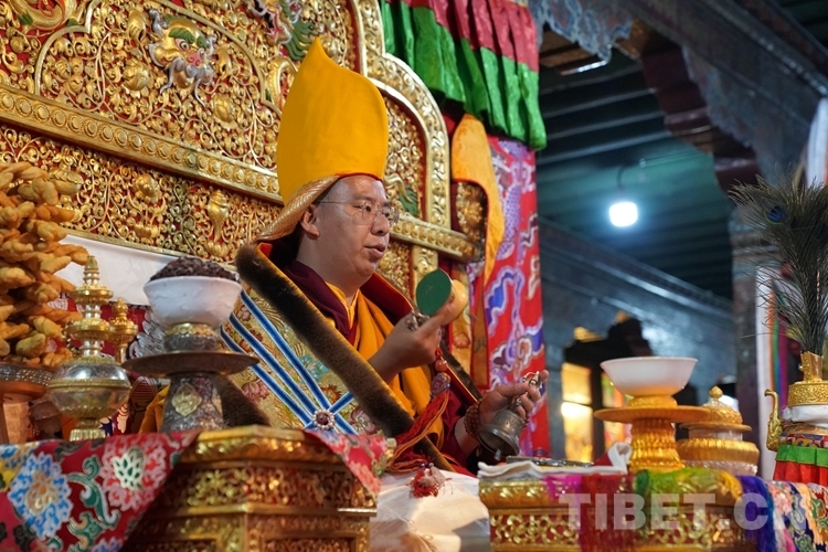 班禪在西藏昌都強巴林寺禮佛講經、為信眾摸頂賜福