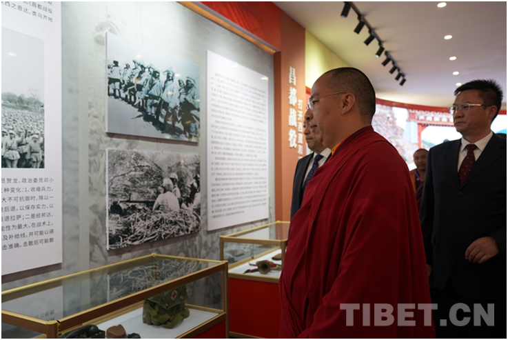 一張張照片、一件件實物訴說著那段崢嶸歲月,崗托的曆史,是軍(jun) 人與(yu) 百姓、也是各民族的團結史,更是雪域高原換新顏的奮鬥史,是紅色種子生根發芽,蔚然成林的傳(chuan) 承史。參觀中班禪認真聽取介紹,深切緬懷革命先烈,感受崗托這片熱土獨特的紅色文化。