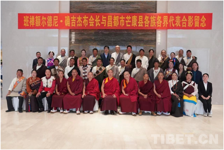 圖為(wei) 班禪與(yu) 芒康縣各族各界代表合影留念 攝影:王淑