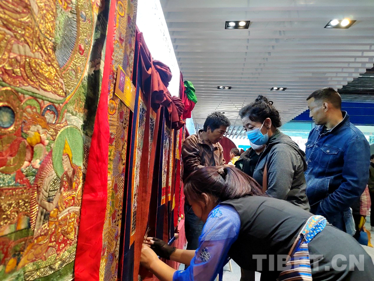 圖為(wei) 市民在展銷活動現場選購唐卡