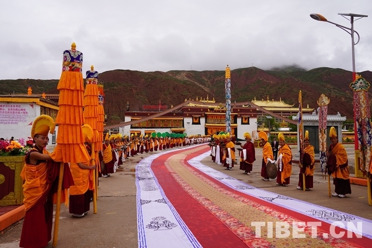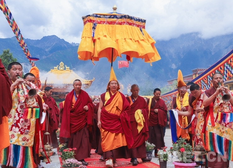 圖為(wei) 班禪在僧眾(zhong) 簇擁下前往崗達寺主殿 攝影:賈華加