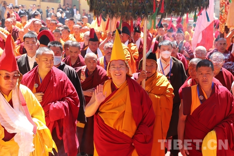 圖為(wei) 班禪向僧眾(zhong) 揮手致意 攝影:賈華加