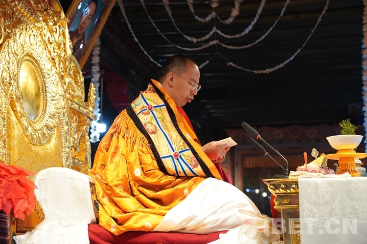 班禪在西藏昌都強巴林寺禮佛講經、為信眾摸頂賜福