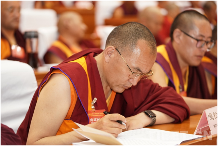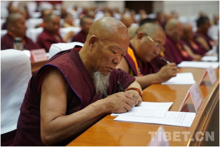 在安排部署下一步重點工作時,班禪表示,推動自我變革,開展教義(yi) 教規闡釋。發揮藏傳(chuan) 佛教界人士在推進中國化中的主體(ti) 作用,推動沿著中國化方向健康傳(chuan) 承,引導藏傳(chuan) 佛教界人士切實增強自我變革的思想和行動自覺,以社會(hui) 主義(yi) 核心價(jia) 值觀為(wei) 引領,在保持基本信仰、核心教義(yi) 的前提下,促進教義(yi) 教規、管理製度、禮儀(yi) 習(xi) 俗、行為(wei) 規範等方麵逐步形成中國特色。實施藏傳(chuan) 佛教教義(yi) 教規闡釋工程。引導藏傳(chuan) 佛教界對教義(yi) 教規、藏傳(chuan) 佛教經典選優(you) 擇重、去粗取精、推陳出新,作出與(yu) 中國國情、中華文化、中國特色社會(hui) 主義(yi) 相適應的通俗易懂、與(yu) 時俱進地闡釋。引導藏傳(chuan) 佛教界人士在闡釋經典、講經說法、日常生活中學習(xi) 使用國家通用語言文字,開展經典翻譯、選編、注釋,挖掘教義(yi) 思想中積極因素。爭(zheng) 做精進修學、推進藏傳(chuan) 佛教健康傳(chuan) 承的好僧尼,爭(zheng) 做守法遵規、弘揚濟世利民優(you) 良傳(chuan) 統的好僧尼,爭(zheng) 做立場堅定、堅決(jue) 維護祖國統一和民族團結的好僧尼。