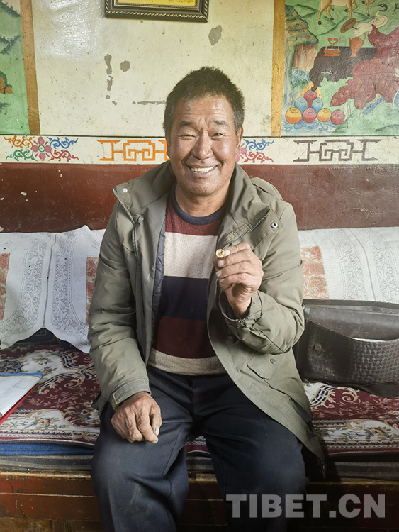 索傑醫生取出第三個(ge) 包的時候,格外小心翼翼。我們(men) 因此也就更好奇,裏麵又是什麽(me) “寶藏”。“我1986年入黨(dang) ,1997年當村大隊的副隊長。2010年,鄉(xiang) 裏在12個(ge) 村的大隊長中,選兩(liang) 名優(you) 秀人員,我就是其中之一。”索傑醫生邊說,邊慢慢拿出一個(ge) 盒子,打開盒蓋,把手在衣服角上抹抹,然後取出一枚金黃閃亮的毛主席像章。“當時我們(men) 縣一共去了20人,先到那曲市委黨(dang) 校學習(xi) 了8天,然後到北京和大連分別參觀學習(xi) 7天。在北京,我去了毛主席紀念堂、天安門、長城、鳥巢、水立方。我在天安門廣場買(mai) 了鮮花,到毛主席紀念堂門口時,先是有點緊張,因為(wei) 那裏站崗的軍(jun) 人。我把鮮花放在一個(ge) 統一的地方,瞻仰毛主席遺容時,我緊張的心情一下子沒有了,都變成了激動。”索傑醫生把手放在心髒的位置比劃著,“為(wei) 了紀念毛主席,我就買(mai) 了一枚毛主席像章。”