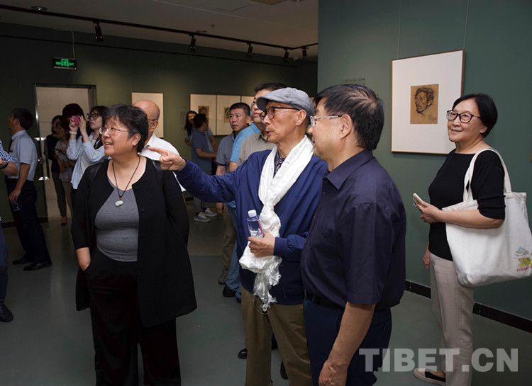 開幕式後,各位來賓在韓書(shu) 力先生的引領解說下,興(xing) 致勃勃地參觀了展覽。通過韓書(shu) 力先生的講解,大家進一步加深理解了作品所體(ti) 現的西藏各族人民積極向上的精神麵貌,體(ti) 會(hui) 到了各族群眾(zhong) 淳樸真摯的人生之美,感知到畫家對那一片高天厚土的真摯情感。