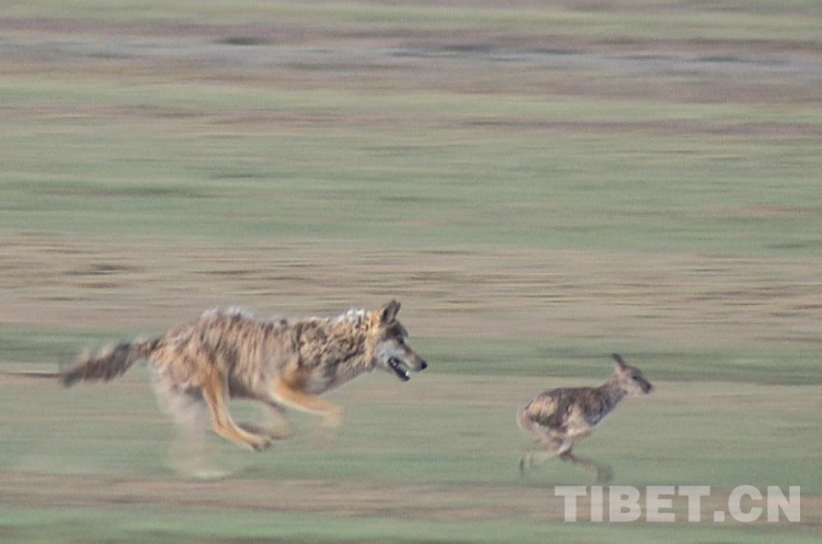 圖為(wei) 在羌塘自然保護區,野狼正在捕食弱小的藏羚羊。攝影:達瓦次仁