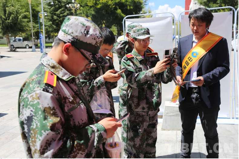 根據分工,中國建設銀行西藏自治區分行承擔“進校園”的宣傳(chuan) 任務。在西藏大學納金校區內(nei) ,宣傳(chuan) 員們(men) 利用午歇間隙,為(wei) 同學們(men) 宣傳(chuan) 相關(guan) 法律法規;如何有效防範網絡金融詐騙以及安全使用金融IC卡、手機銀行、網上銀行、數字人民幣、網絡理財、網絡借貸等網絡安全意識和技能。