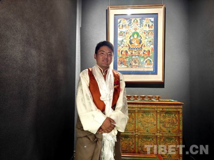 圖為(wei) 白瑪桑旦在自己的作品前留影