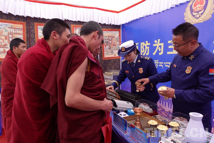 圖為(wei) 啟動儀(yi) 式現場拉薩消防指戰員向僧人科普日常寺廟消防安全知識