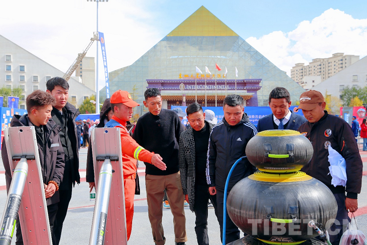 圖為(wei) 啟動儀(yi) 式現場拉薩消防指戰員向市民介紹高精尖裝備器材