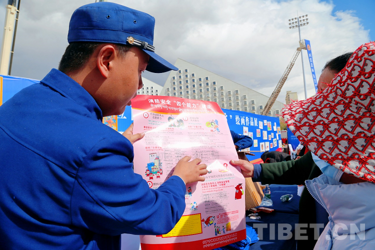 圖為(wei) 啟動儀(yi) 式現場拉薩消防指戰員向市民科普日常消防安全知識