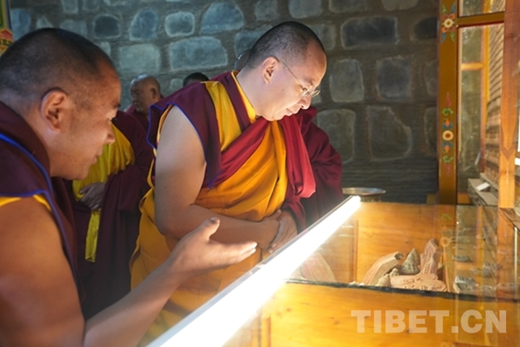 圖為(wei) 班禪參觀石刻、擦擦文物陳列室 攝影:王淑