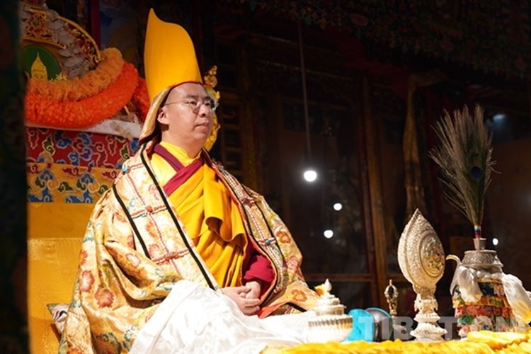 10月12日,班禪前往紮西吉培寺禮佛講經。清晨,金色的陽光灑落在寺廟金頂之上,布置一新的寺廟顯得更加宏麗(li) 。