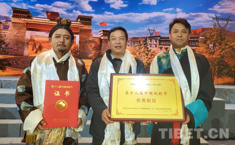 圖為(wei) 藏戲《次仁拉姆》榮獲第十八屆中國戲劇節優(you) 秀劇目獎