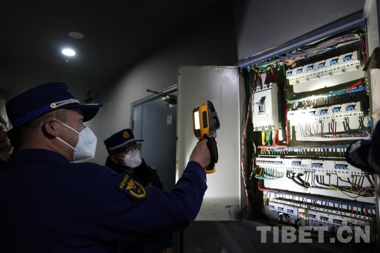 圖為(wei) 消防監督員正在對配電櫃進行溫度測量