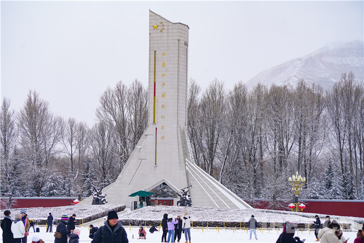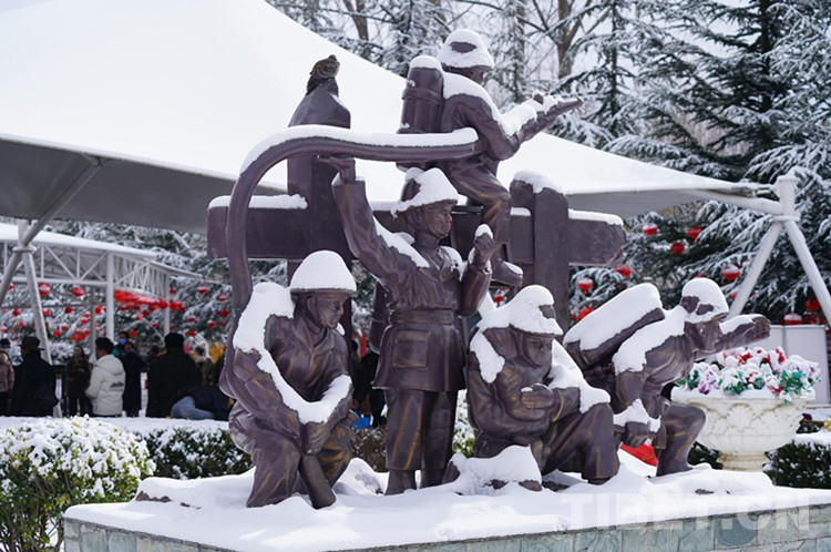 圖為(wei) 雪中的西藏和平解放紀念碑 攝影:趙振宇
