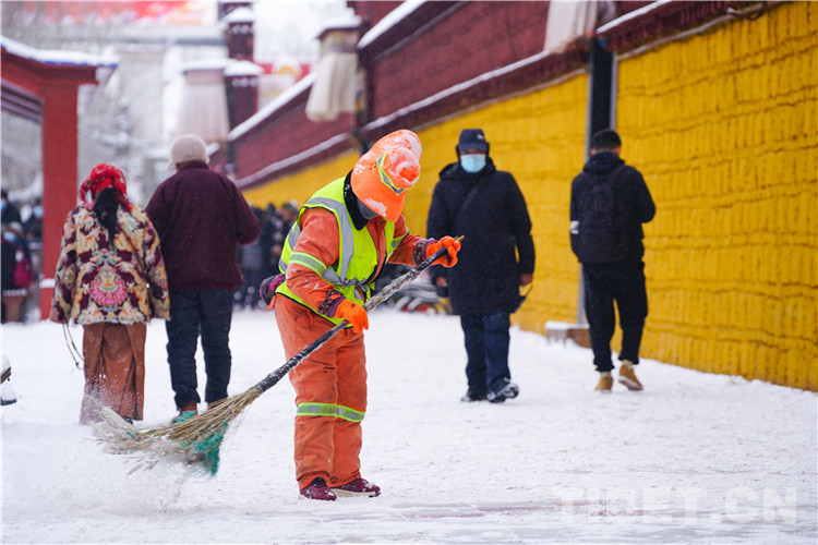 圖為(wei) 功德林寺前掃除積雪的“城市美容師” 攝影:趙振宇