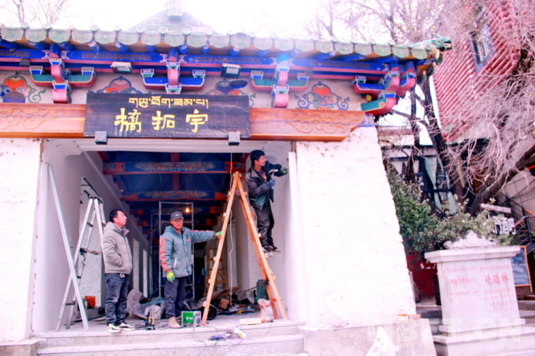 正在橋上甬堂裏裝修的師傅們(men) 說