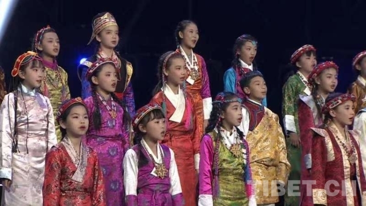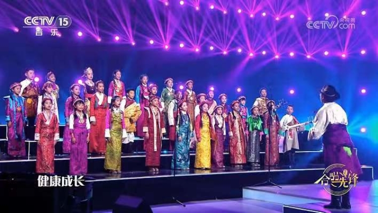 圖為(wei) 西藏珠峰少年合唱團登上中央廣播電視總台音樂(le) 頻道合唱節目《合唱先鋒》舞台