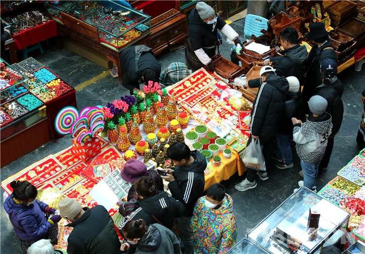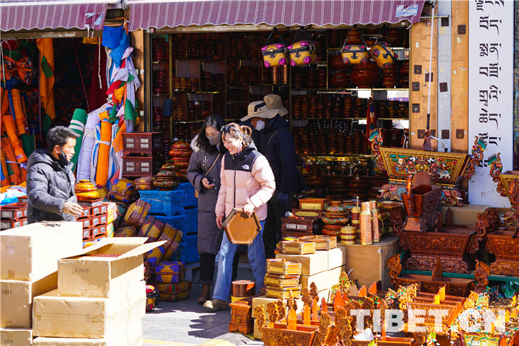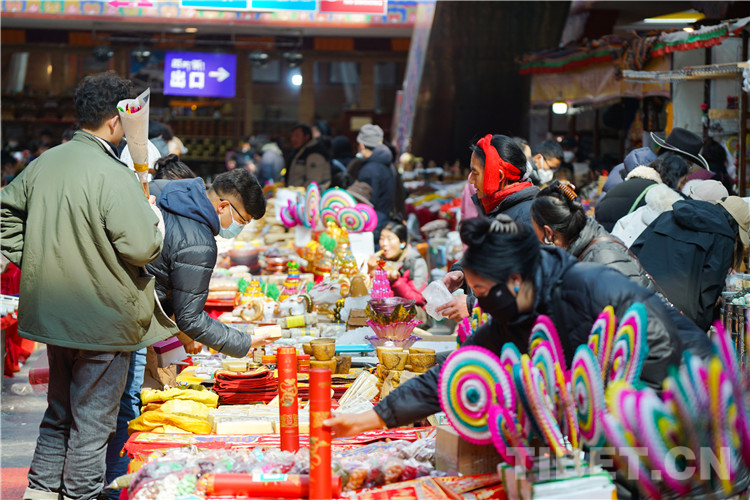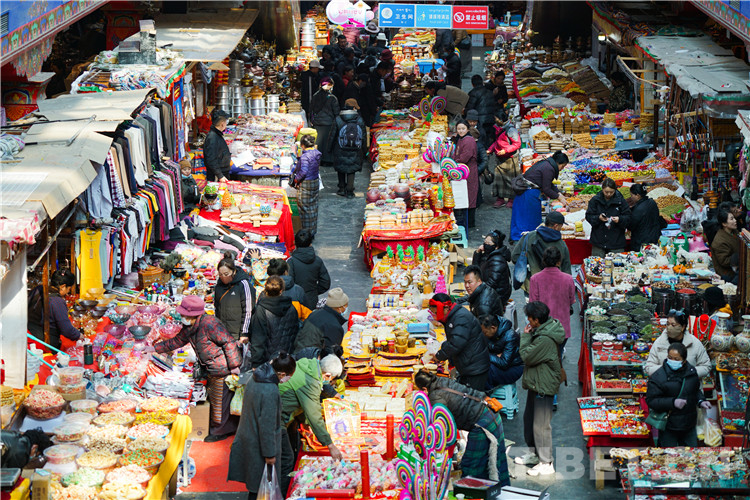 圖為(wei) 銷售著琳琅滿目各式藏曆新年年貨的八廓商城 攝影:趙振宇