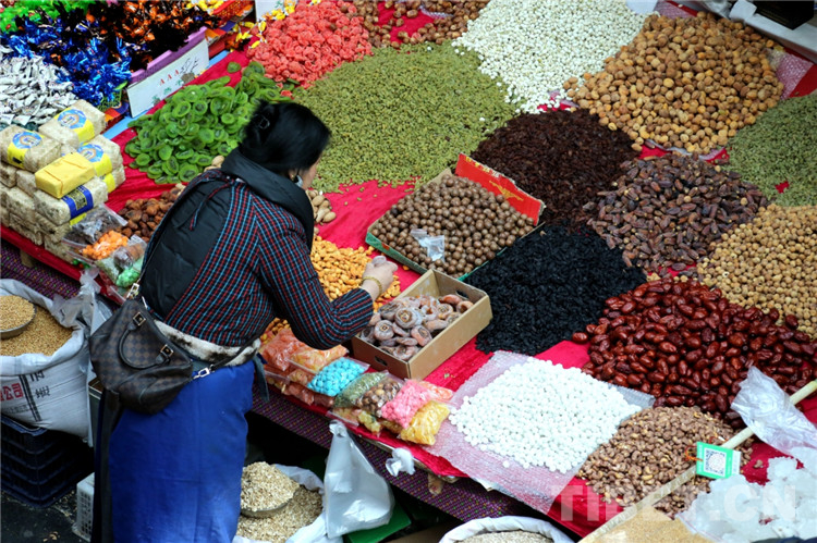 拉薩:“兩節”近 年味濃 年貨市場熱鬧中