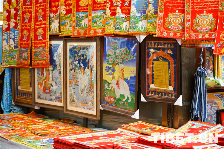 圖為(wei) 各式各樣的藏式春聯成為(wei) 年貨市場的新“寵兒(er) ” 攝影:趙振宇