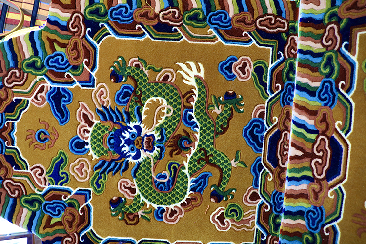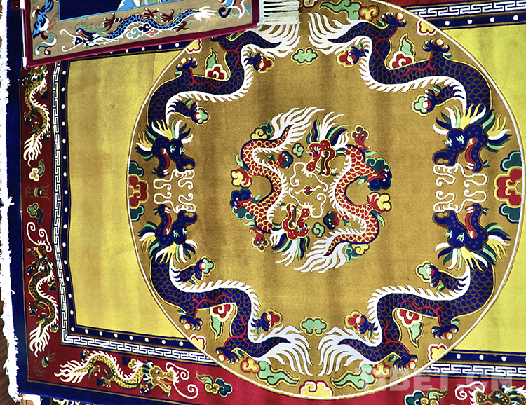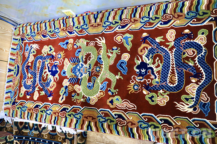 圖為(wei) 藏毯上的三條四爪威龍 攝影:龍真多吉