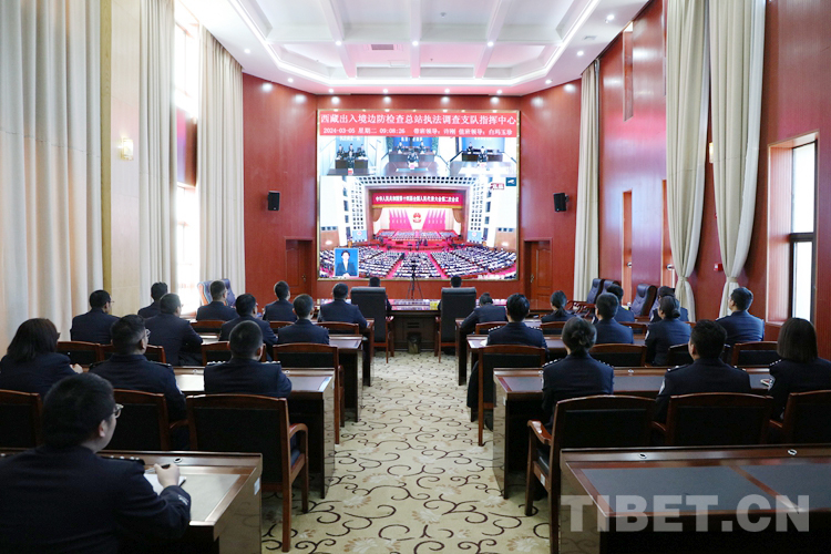 西藏邊檢總站執法調查支隊民警收聽收看十四屆全國人大二次會議開幕會