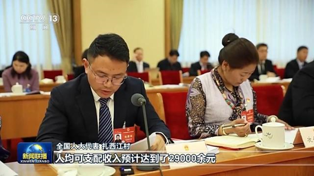 圖為(wei) 紮西江村發言圖片來源:新聞聯播