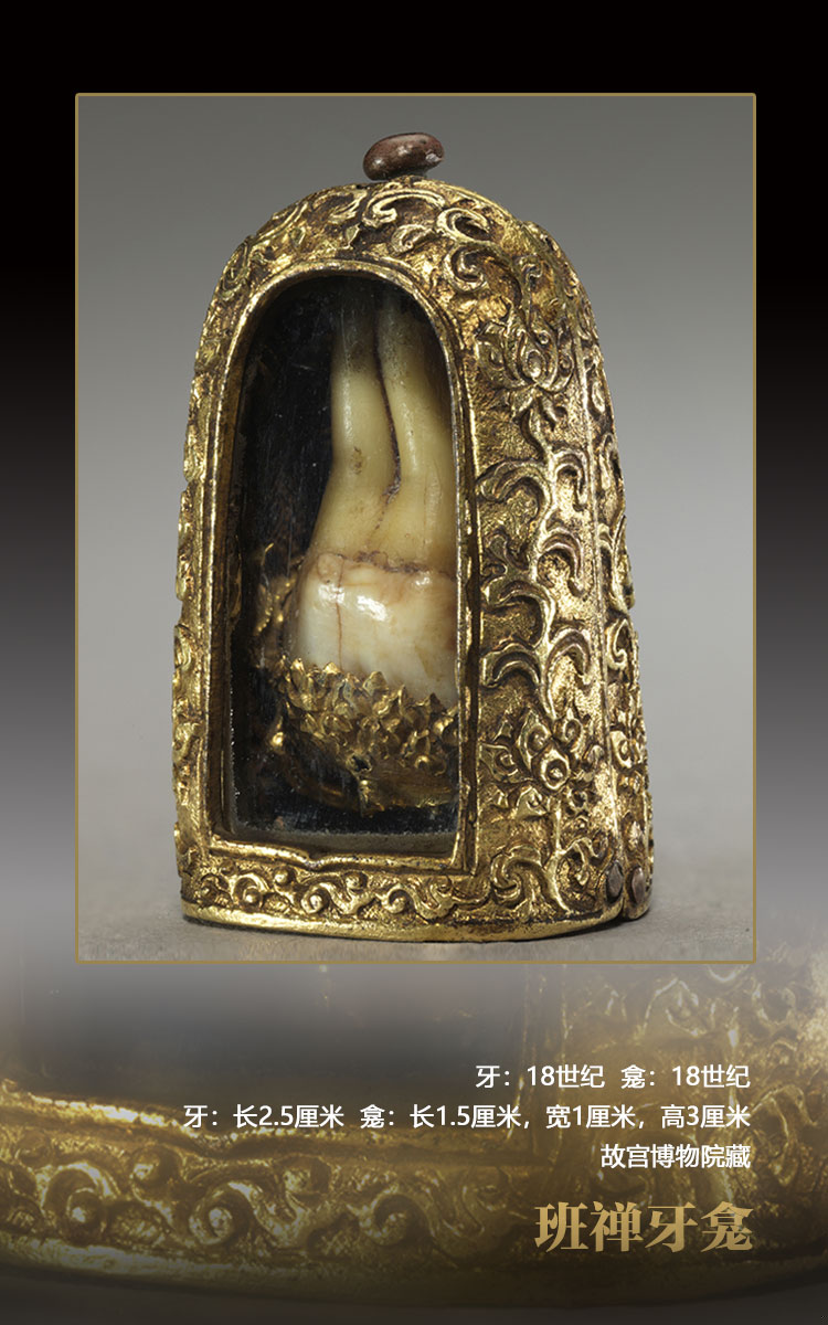 佛教世界的傳(chuan) 統觀念認為(wei) ,牙也是舍利的一種。在藏傳(chuan) 佛教中,上師火化後留下的牙、骨等均視為(wei) 神聖之舍利,或供於(yu) 佛堂,或葬於(yu) 佛塔內(nei) ,永久禮拜。這顆班禪牙也應視為(wei) 班禪最神聖的法物——舍利來看待。