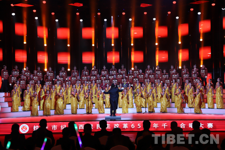 最後,全場起立高唱《我和我的祖國》,在嘹亮的歌聲中拉薩市紀念西藏民主改革65周年千人合唱大賽落下帷幕。(新利平台 記者/賈華加)
