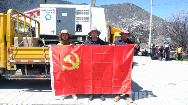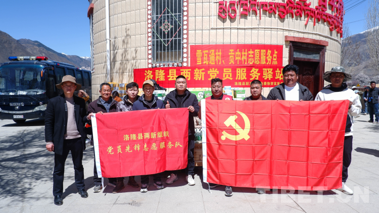 圖為(wei) 洛隆縣兩(liang) 新工委黨(dang) 員先鋒誌願服務隊在俄西