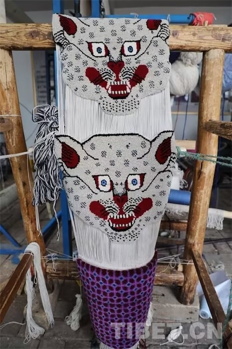 圖為(wei) 搭在傳(chuan) 統木質織架上的藏毯製品 攝影:王茜