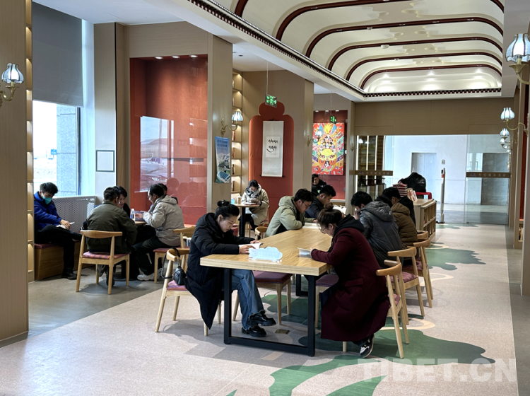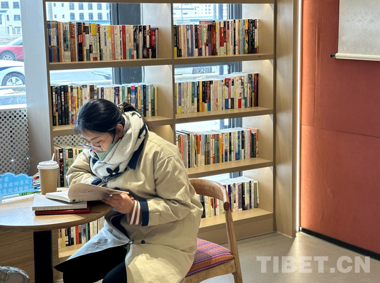 圖為(wei) 4月23日,讀者在那曲市色尼區城市書(shu) 房內(nei) 閱讀 攝影:王楠