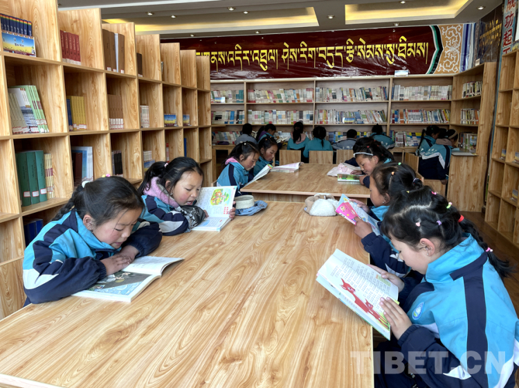 圖為(wei) 4月23日,在西藏日喀則市薩迦縣雄麥鄉(xiang) 中心小學圖書(shu) 館內(nei) ,小學生們(men) 在閱讀書(shu) 籍 攝影:頓珠次仁