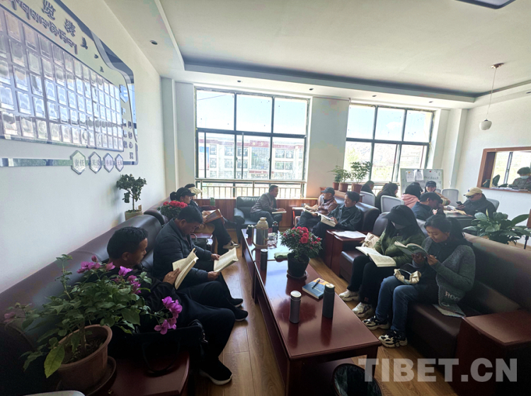 圖為(wei) 4月23日,拉薩市尼木縣小學的教師們(men) 在閱讀書(shu) 籍 攝影:倉(cang) 覺