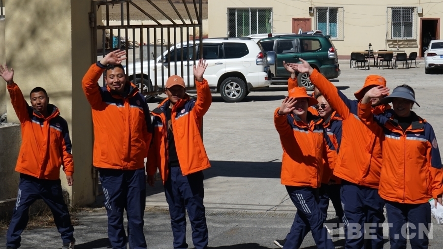 圖為(wei) 臨(lin) 行前,養(yang) 護職工們(men) 向川藏線采訪組揮手致意 攝影:張宇