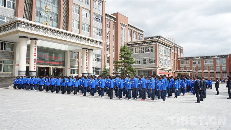 圖為(wei) 迪慶州民族中學學生參加升旗儀(yi) 式 攝影:巫姍燕