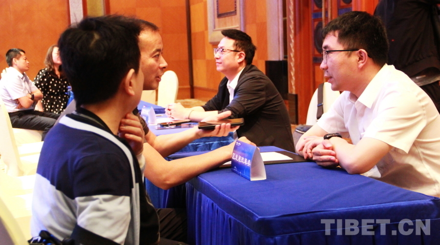 圖為(wei) 西藏自治區通用航空產(chan) 業(ye) 招商引資推介會(hui) 現場專(zhuan) 門設置了洽談谘詢區域,西藏自治區有關(guan) 單位與(yu) 來自全國各地有合作與(yu) 投資意向的公司進行麵對麵的交流 攝影:劉莉