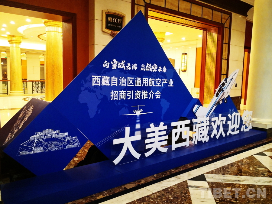 圖為(wei) 西藏自治區通用航空產(chan) 業(ye) 招商引資推介會(hui) 現場設置的展板 攝影:劉莉