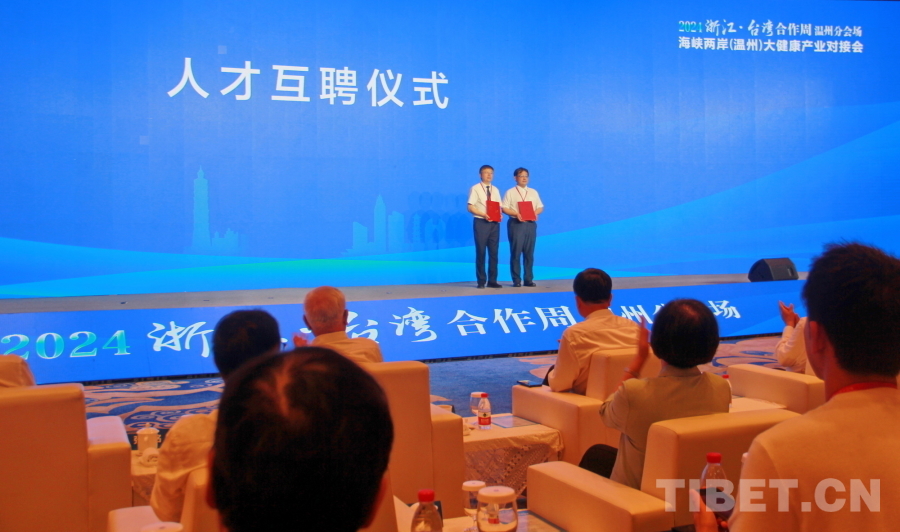 圖為(wei) 2024浙江·台灣合作周溫州分會(hui) 場暨海峽兩(liang) 岸(溫州)大健康產(chan) 業(ye) 對接會(hui) 上舉(ju) 行的人才互聘儀(yi) 式 攝影:劉莉