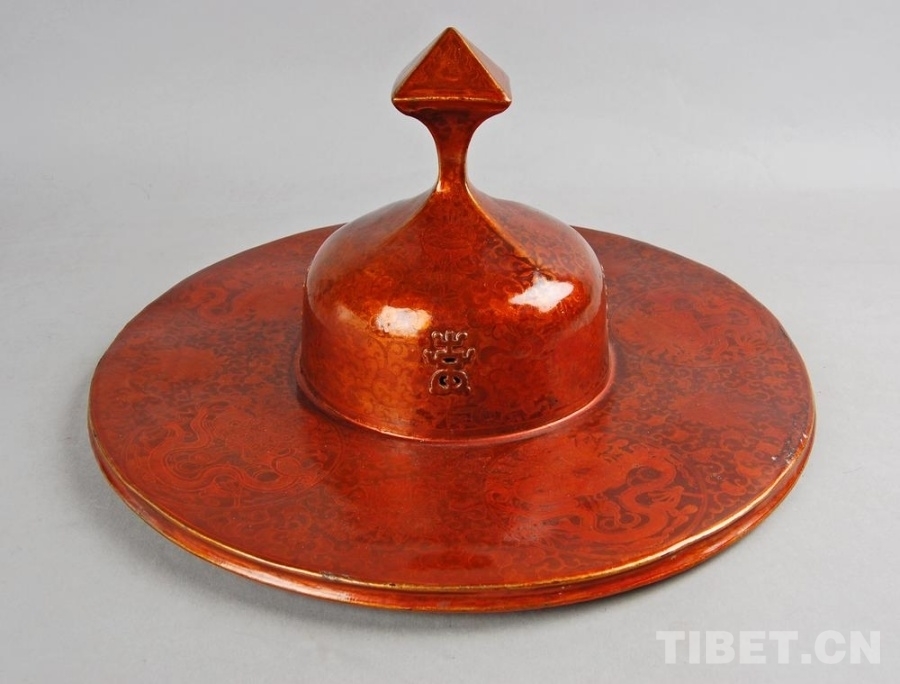 14號藏品漆繪帽上精美繁複的花紋圖案