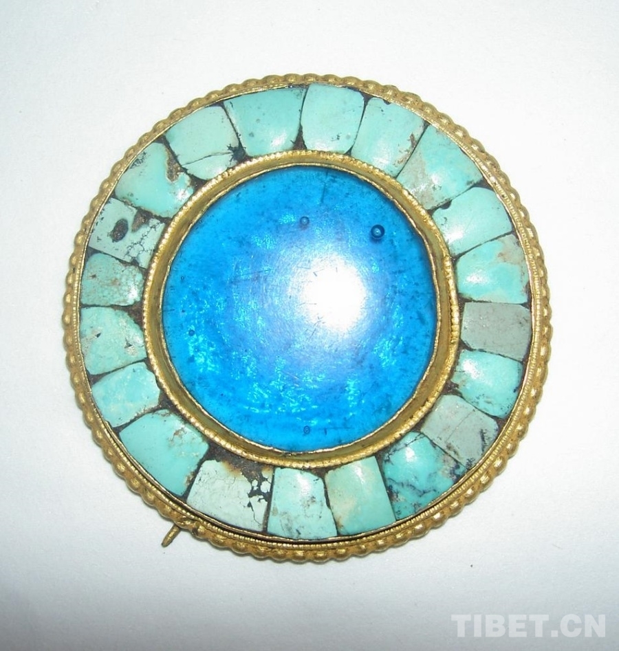 大英博物館藏19世界圓形銅鎏金鑲藍玻璃綠鬆石飾品(17號)