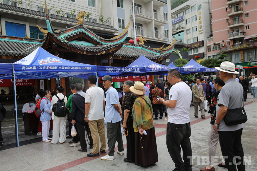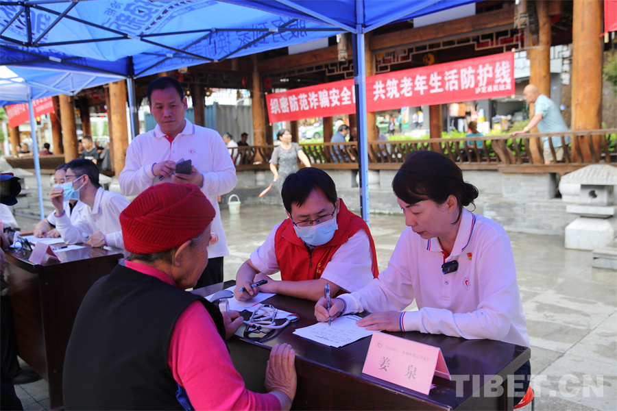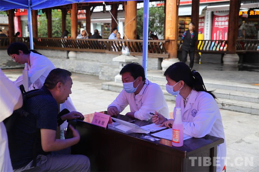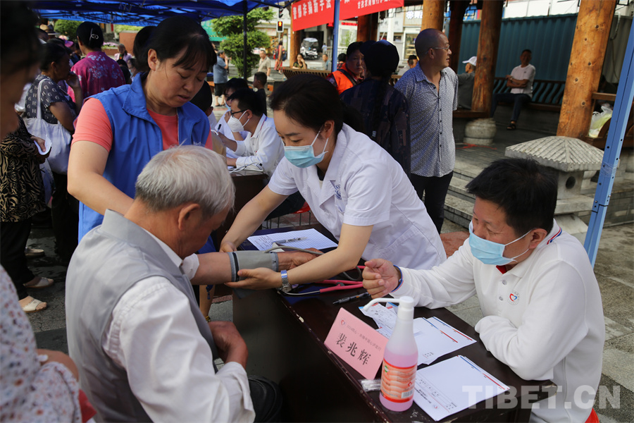 圖為(wei) 瀘定橋廣場義(yi) 診點,專(zhuan) 家正在為(wei) 患者量血壓 攝影:登真巴珍