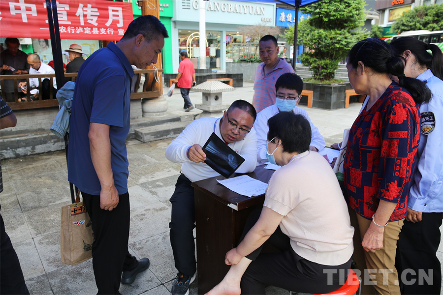 圖為(wei) 瀘定橋廣場義(yi) 診點,骨科專(zhuan) 家正在為(wei) 患者診治 攝影:登真巴珍