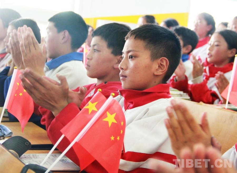 圖為(wei) 四川省甘孜州石渠縣第二完全小學學生代表以熱烈的掌聲歡迎醫療專(zhuan) 家們(men) 的到來 攝影:劉莉